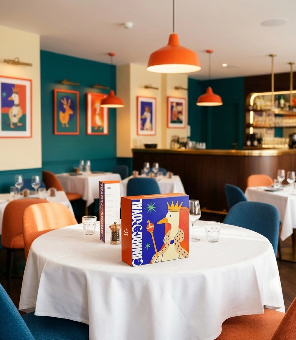 Dans cette identité, un jeu subtil de positif/négatif révèle une forme de canard à la fois élégante et malicieuse : l’image semble se cacher, se dévoiler, invitant à un regard attentif et curieux.